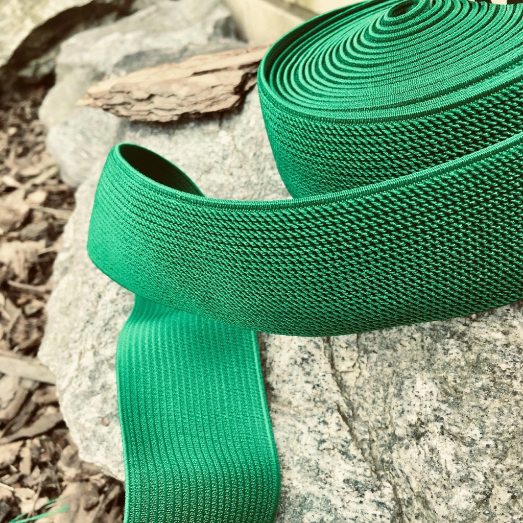 Parádní guma do pasu pro všechny nadšené milovníky přírody a nejen ty v sytě zelené barvě, plochá, šířka 5 cm. Hodí se hlavně jako zdobná pasová guma na sukních, kalhotách či sportovním oblečení.