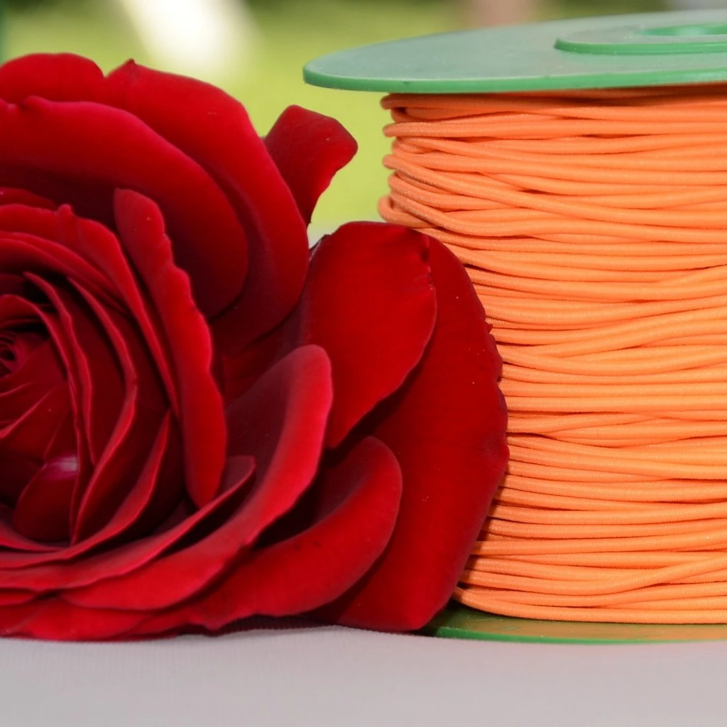 Tenká klobouková gumička, kulatá, průměr 1,5 mm. Využijete ji při jednodušším způsobu řasení látky - žabičkování (přišíváte gumičku úzkým cikcak stehem), upevňování masek na karneval a v současné době ji využijete i při šití roušek.