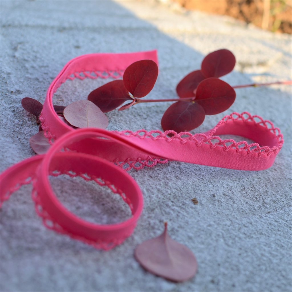 0,5 m lemovací proužek fuchsiový s dekorem 12 mm (polyester/bavlna)