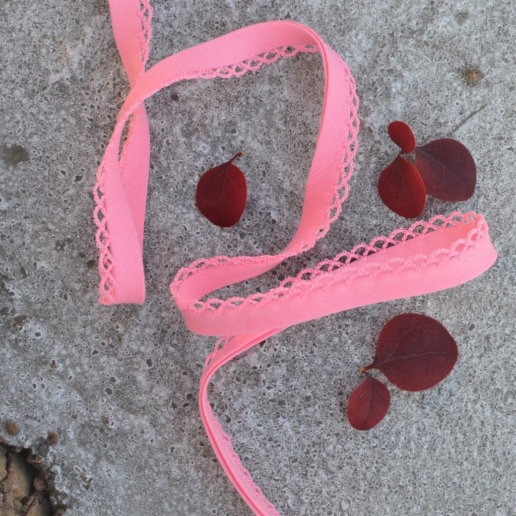 0,5 m lemovací proužek růžový s dekorem 12 mm (polyester/bavlna)