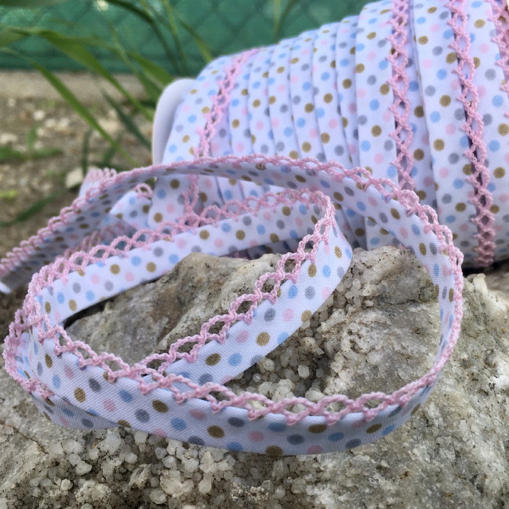 0,5 m lemovací proužek s puntíky pastel s růžovým dekorem 12 mm