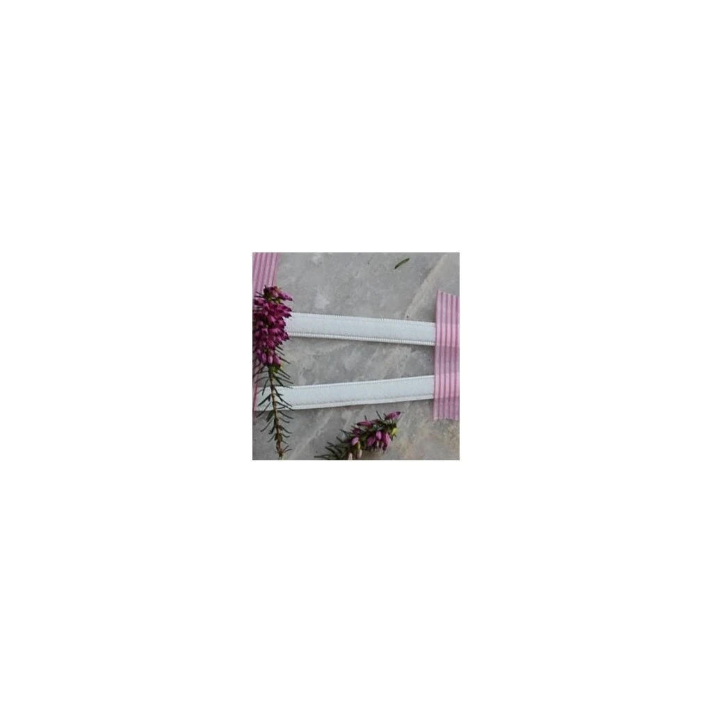 Ozdobná pružná sametka s lehce lesklými okraji v bílé barvě určená k dekorativnímu lemování, plochá, šířka 8 mm. Úžasně vynikne především na spodním prádle či lemování triček a šatů.