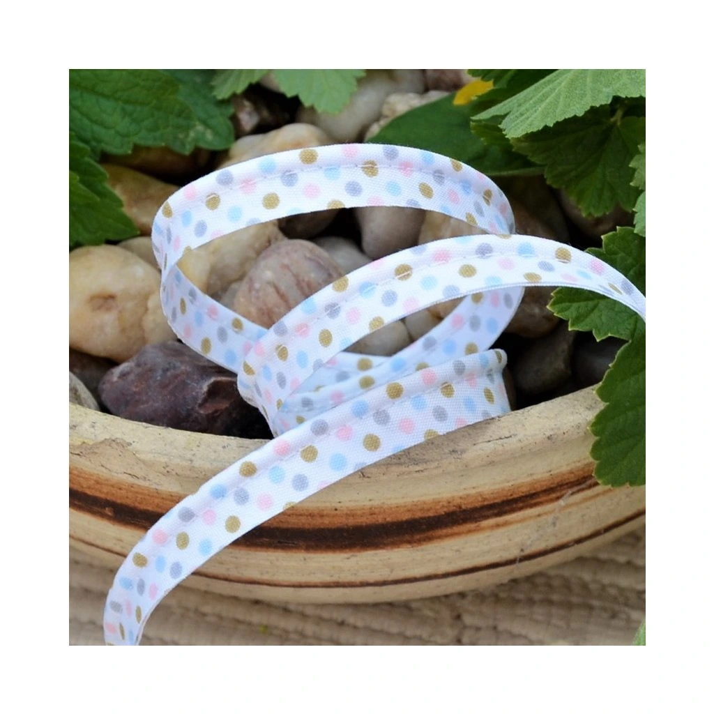 Ozdobná paspulka s pestrobarevnými puntíky vhodná pro nevšední zakončení textilních výrobků (všívá se do lemů nebo mezi textilie). Použití je velmi snadné i pro začátečníky a konečný výsledek předčí očekávání. Šíře paspule 10 mm.
