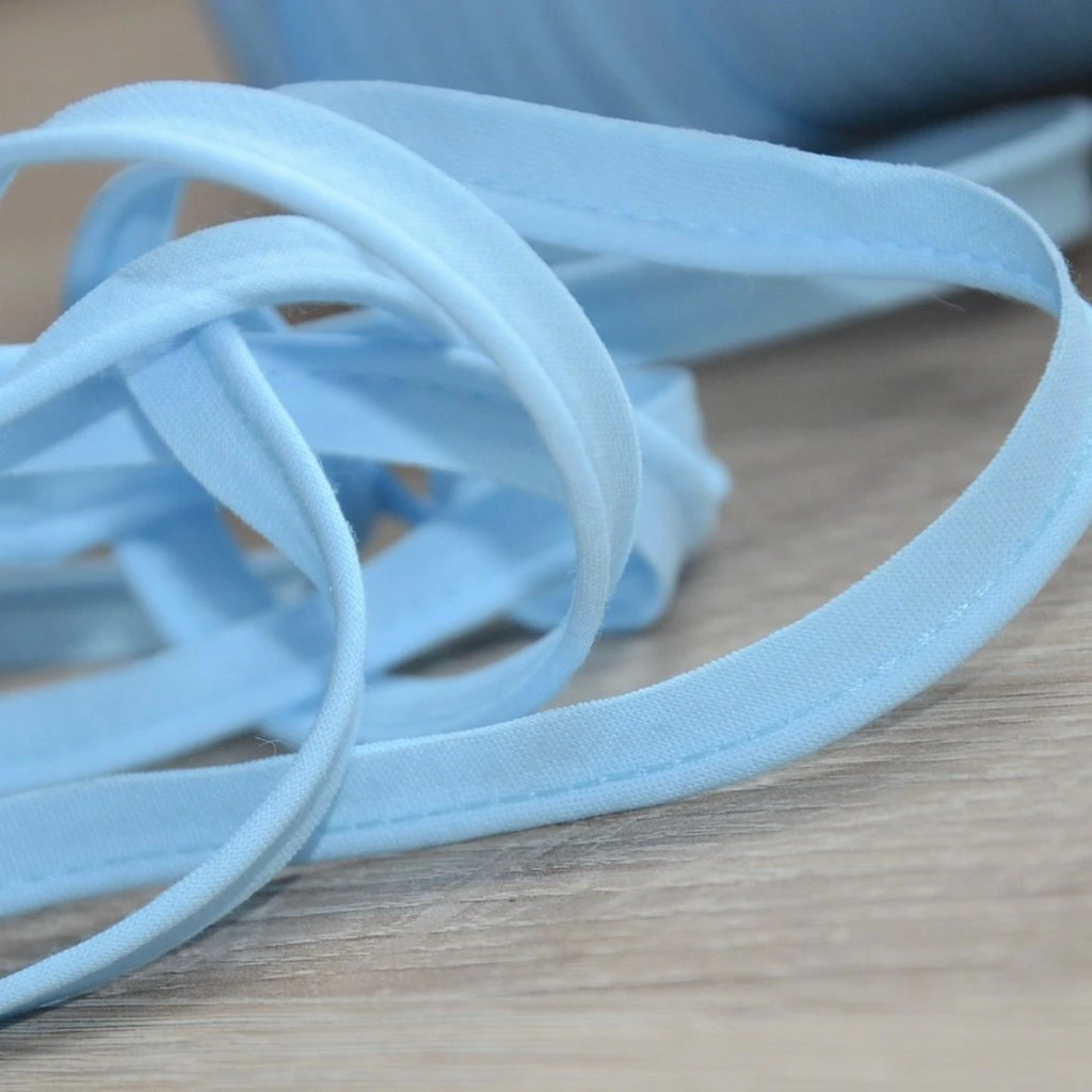Dekorativní paspulka ve světle modré barvě vhodná pro ozdobnější zakončení textilních výrobků (všívá se do lemů nebo mezi textilie). Použití je velmi snadné i pro začátečníky a konečný výsledek předčí očekávání. Šíře paspule 10 mm.