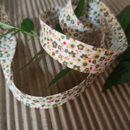 Šikmý proužek s nádherným jemným vzorem medvídků létajících na nebi v kombinaci světle růžové a šedé barvy na bílém podkladu. Šíře proužku před přeložením 30 mm. Po našití proužku je jeho šíře 15 mm. Proužek je ideální na lemování dětských zavinovaček, mantinelů do postýlek nebo hracích dek.