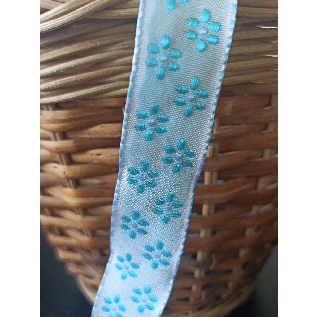 0,5 m stuha - světle modrá kvítka 25 mm