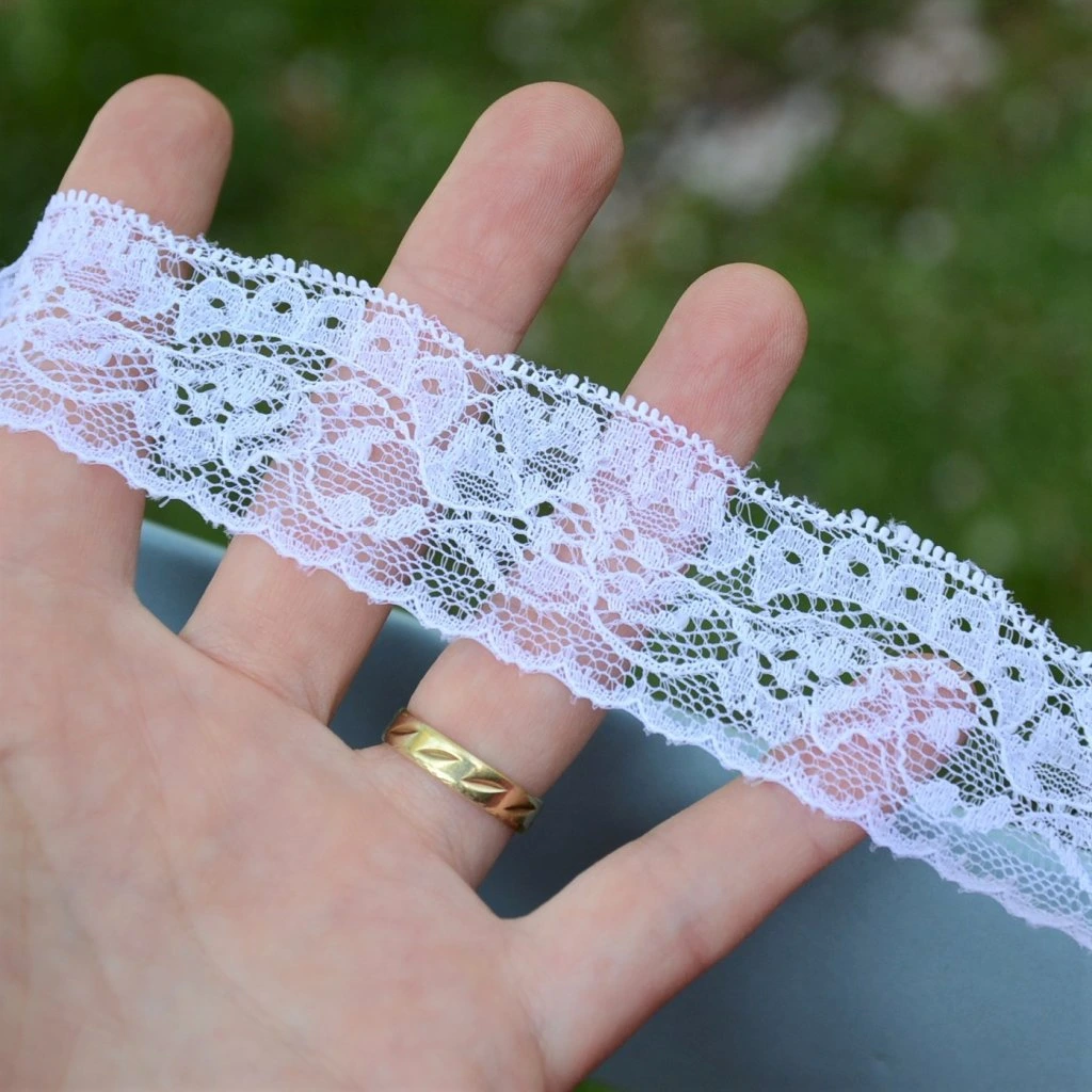 Jemná krajka v bílé barvě, šířka 3,5 cm.