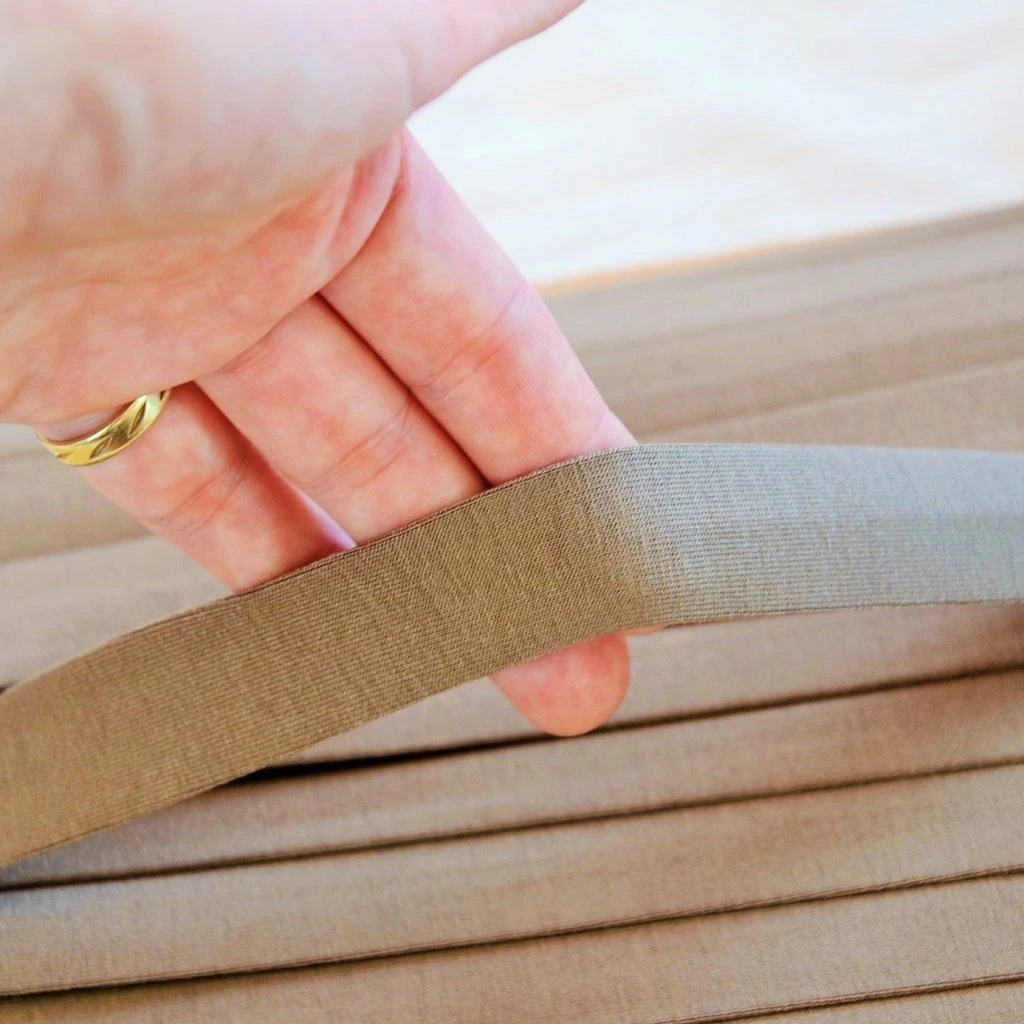 Pružný šikmý proužek z viskózového úpletu usnadní práci při lemování oblečení z úpletu, nemusíte se už tak trápit s přípravou vlastního proužku. Šíře proužku před přeložením 20 mm, po našití 10 mm, délka 3 metry.