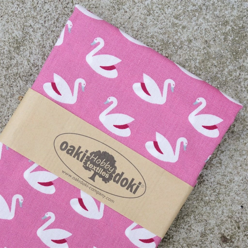 Lehká bavlna se vzorem labutí.