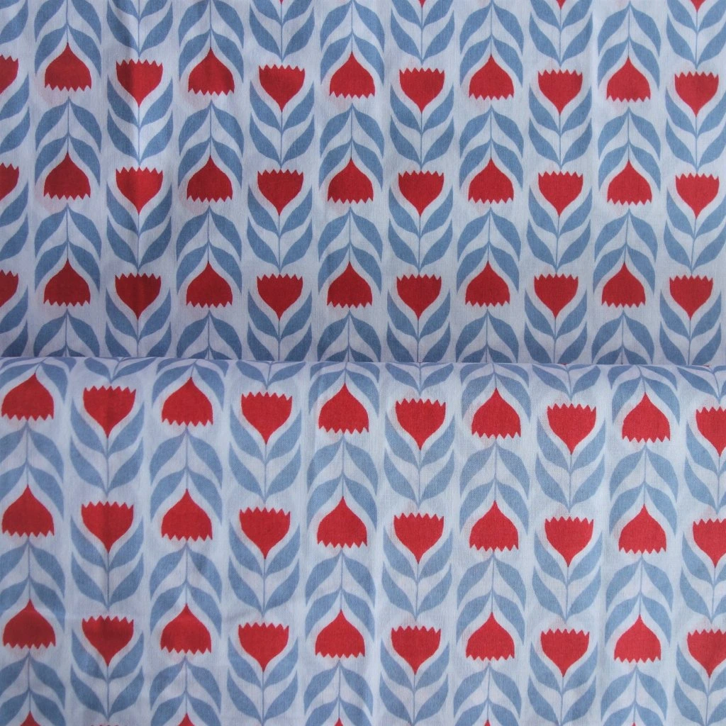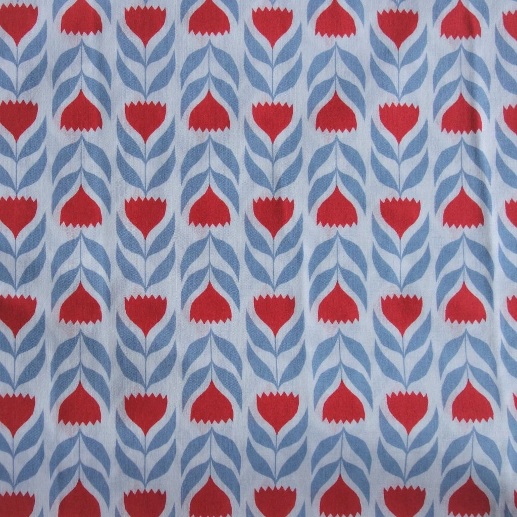 Nechte se hýčkat a dopřejte si šaty, halenku, sukni, tuniku či cokoliv dalšího z této úžasně příjemné látky se vzorem tulipánů v geometrickém rozložení.