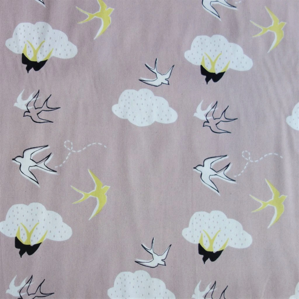 Jednoduchý a efektní vzor vlaštovek v oblacích před západem slunce, který vynikne na sukních, šatech, tunikách ale i bytových dekoracích. Neváhejte, tato látka vás okouzlí.