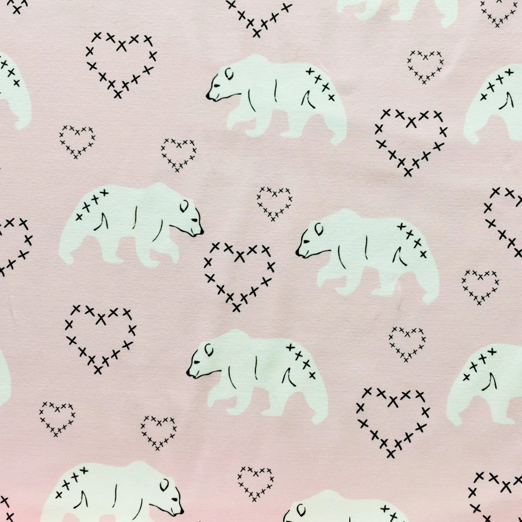 Tahle látka je jednoduše srdcová záležitost ... lední medvědi na jemně růžovém podkladu