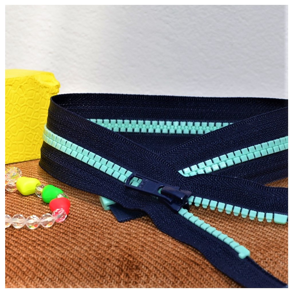 Dělitelný kostěný zip s plastovými zoubky v moderním hranatém a plochém designu a jezdcem s aretací (brzdou) je lehký, zároveň velmi odolný vůči opotřebení a co víc, ještě parádně vypadá. Je ideální do svetrů, bund či mikin.