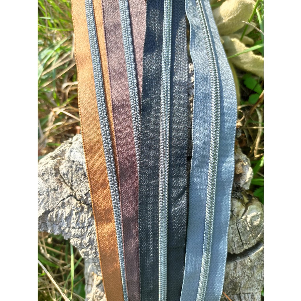 Dělitelný spirálový zip s plastovými zoubky a dvěma efektními jezdci s aretací (brzdou) je lehký, ohebný, zároveň velmi odolný vůči opotřebení a co víc, ještě parádně vypadá. Luxusním prvkem je stříbrná spirála a elegantní stříbrné běžce s taháčkem.