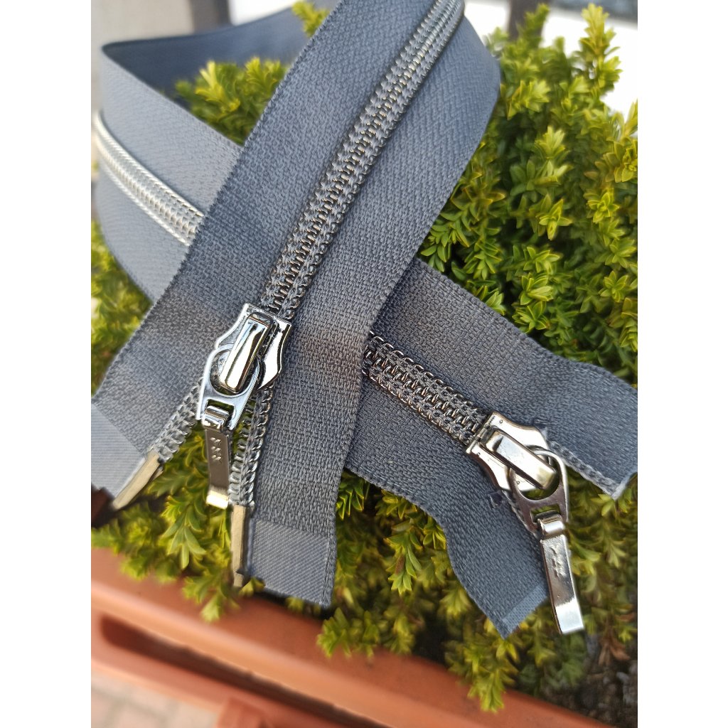 dělitelný spirálový zip YKK (2 jezdci) - 65 cm, šedý se stříbrnou spirálou