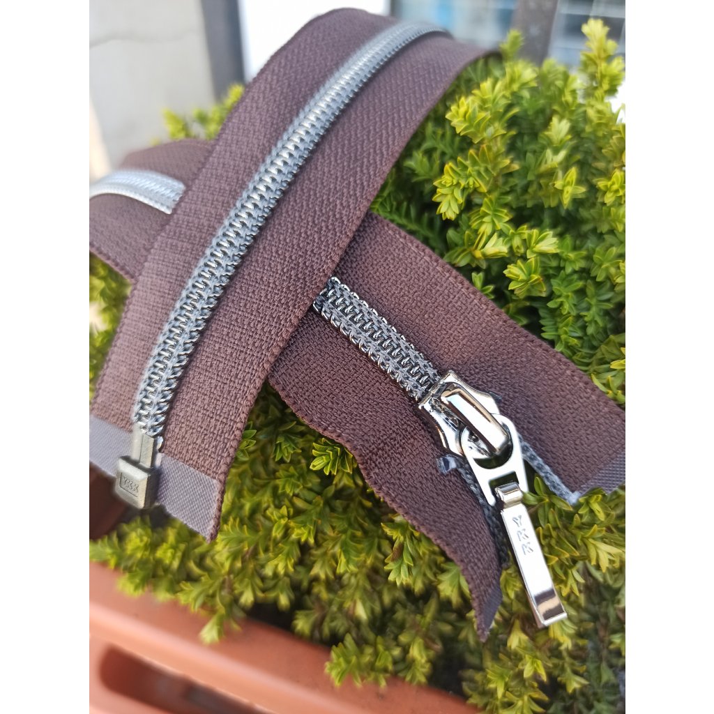 dělitelný spirálový zip YKK - 60 cm, brownie se stříbrnou spirálou