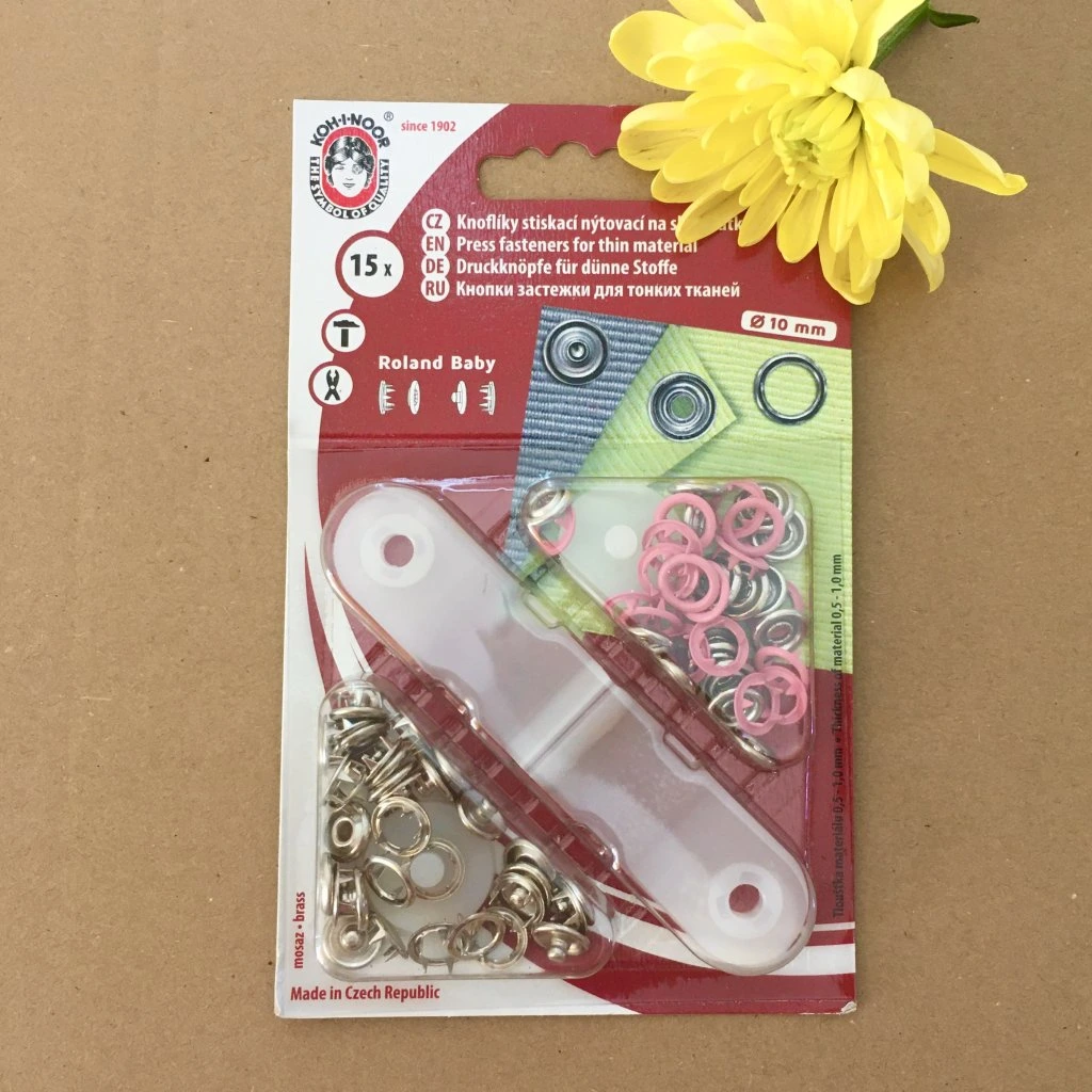 druky Roland Baby na slabé látky 10 mm kovové, růžová, 15 ks
