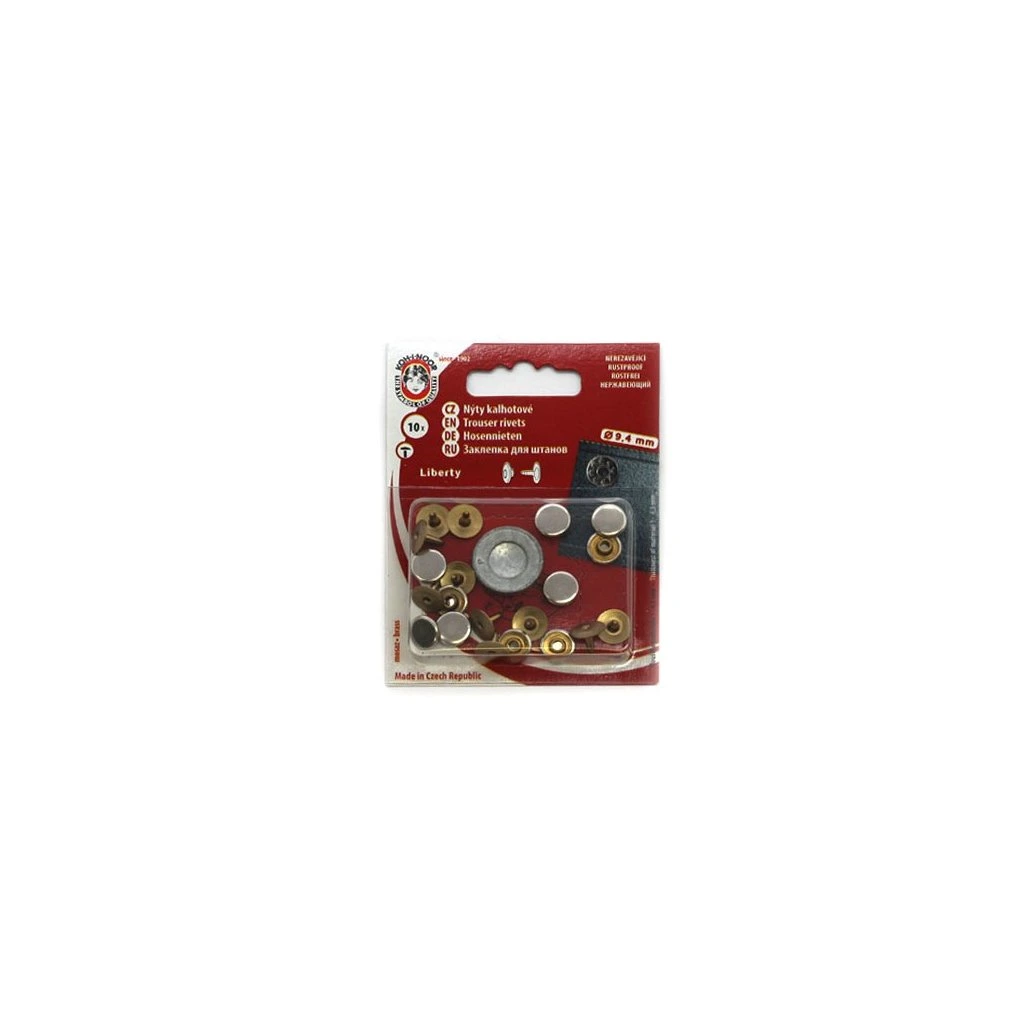 Nerezavějící mosazné ploché nýty se používají jako ozdobný prvek jeansových a podobných oděvů a zároveň slouží ke zpevnění švů. Pomocí pár nýtů si tak můžete vytvořit svůj jedinečný kousek ve vašem šatníku.