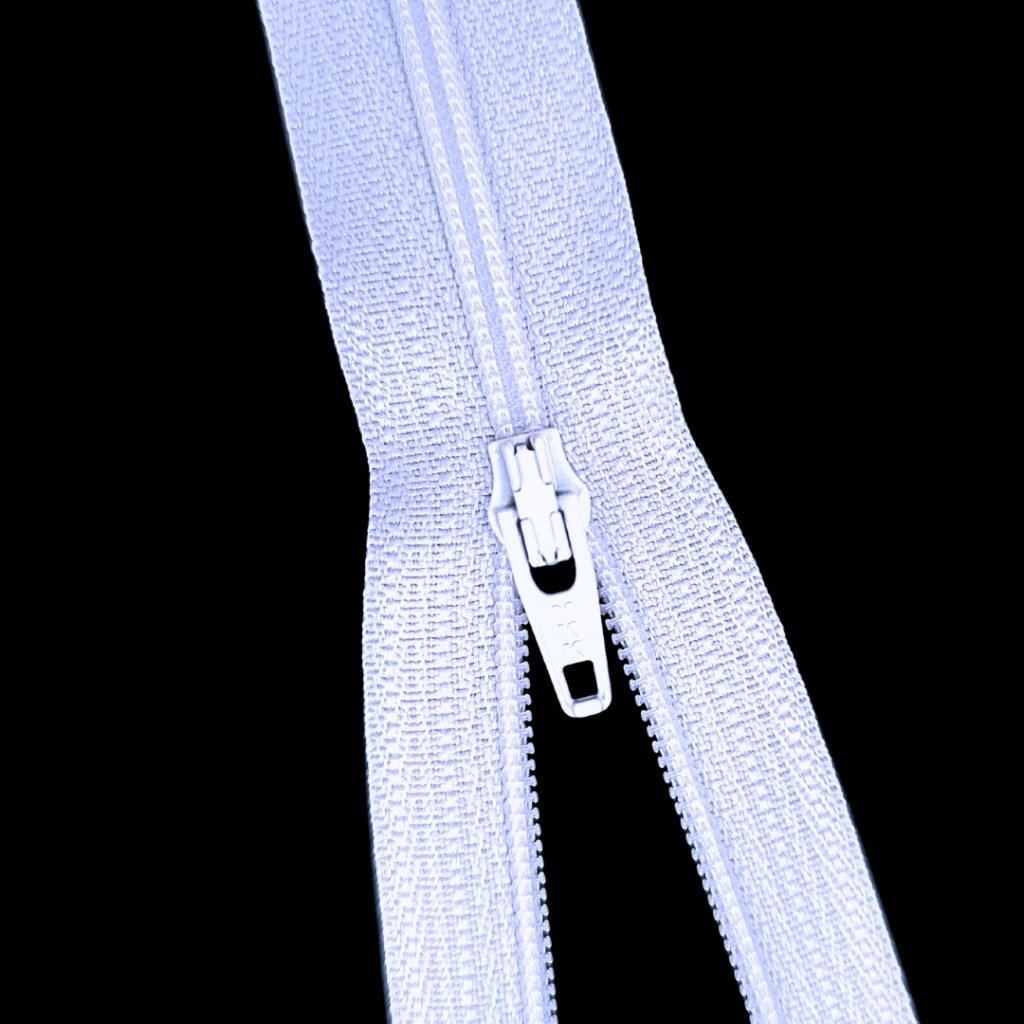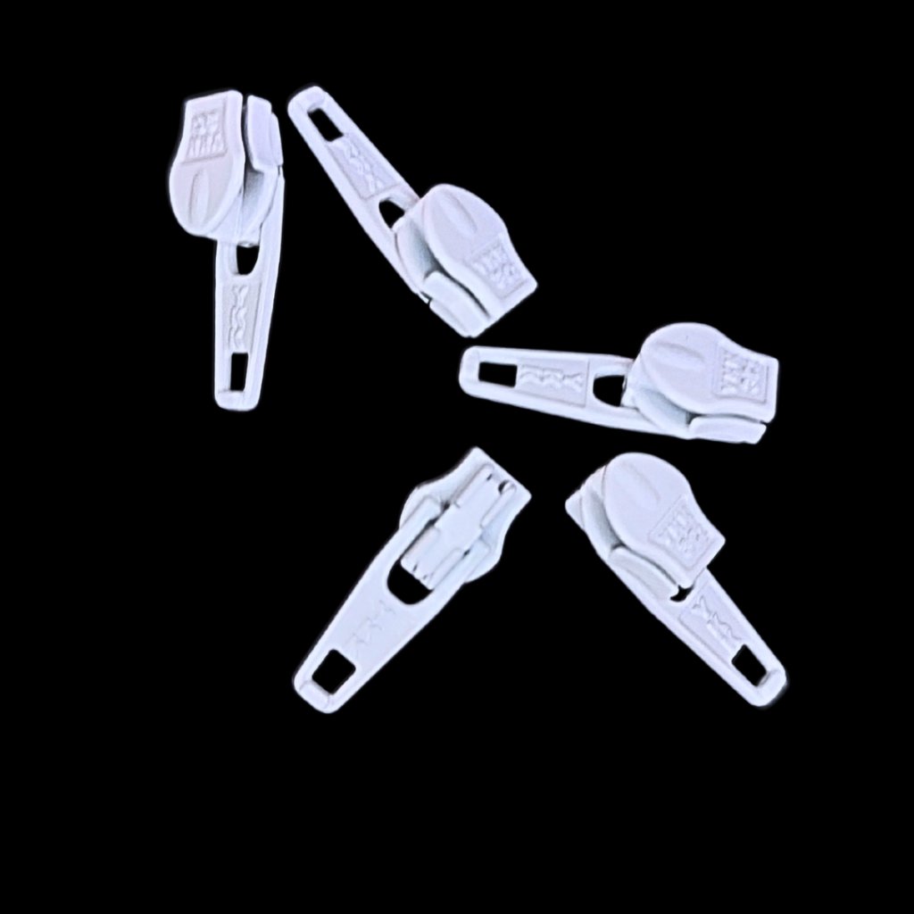 kovový jezdec uzší k nekonečnému spirálovému zipu YKK, bílý, s aretací, vel.3