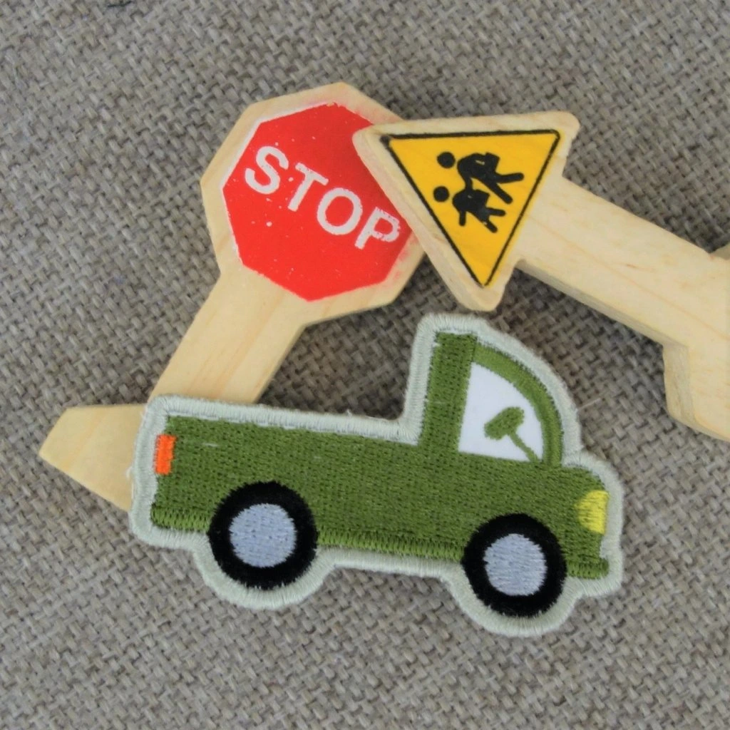 Nášivka je vytvořena z bavlněné látky a vyšitá viskózovými nitěmi. Motiv je vyztužen, takže se po našití látka nekrabatí ani neprověšuje a dobře drží tvar. Okraje jsou termofixovány, aby se látka netřepila. Aplikaci lze našít nebo přilepit lepidlem na textil.