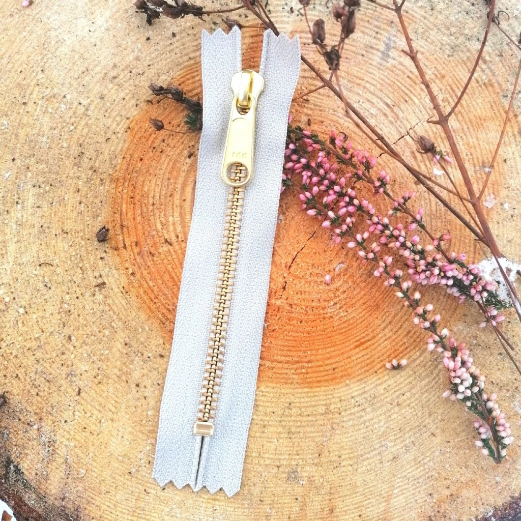 Nedělitelný kovový zip s mosaznými zoubky je velmi odolný vůči opotřebení a co víc, ještě parádně vypadá. Využijete ho na kapsy, peněženky, do kabelek či taštiček. Lze ho využít i na mikiny oblékané přes hlavu, ale je třeba vzít v úvahu, že je jezdec bez aretace a snadněji se otevírá.