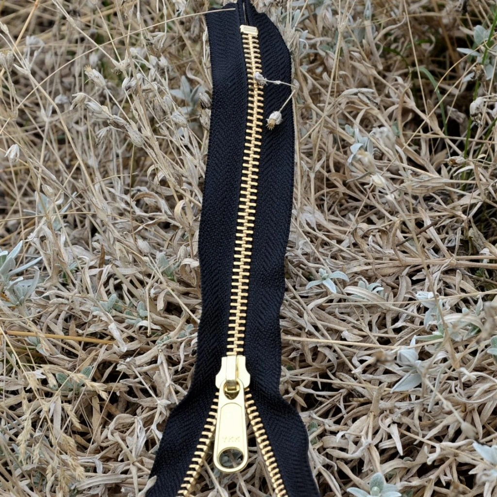 Nedělitelný kovový zip s mosaznými zoubky je velmi odolný vůči opotřebení a co víc, ještě parádně vypadá. Využijete ho na kapsy, do kabelek či taštiček. Lze ho využít i na mikiny oblékané přes hlavu, ale je třeba vzít v úvahu, že je jezdec bez aretace a snadněji se otevírá.