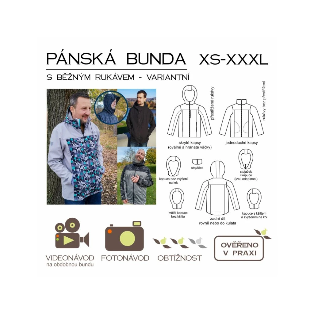 Střih na pánskou bundu, která má mnoho variant a zvládne jej ušít i mírně pokročilá švadlenka (obsahuje i variantu bez kapes a variantu s jednoduchými kapsami).