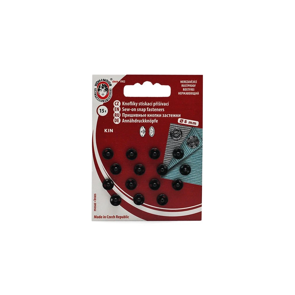 Přišívací patentky KIN 8mm, černý lak, 15ks