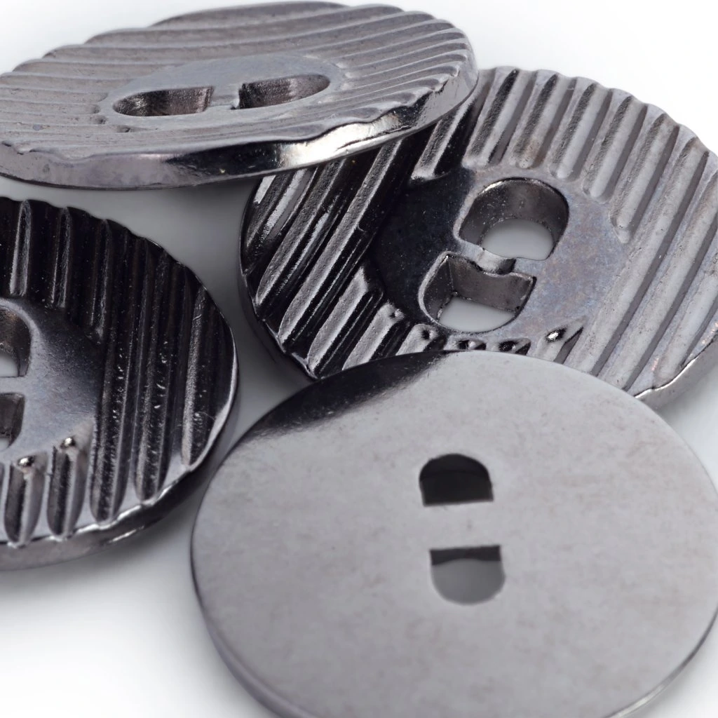Knoflíky kulatého tvaru v tmavě šedé barvě, velikost knoflíku 18 mm.