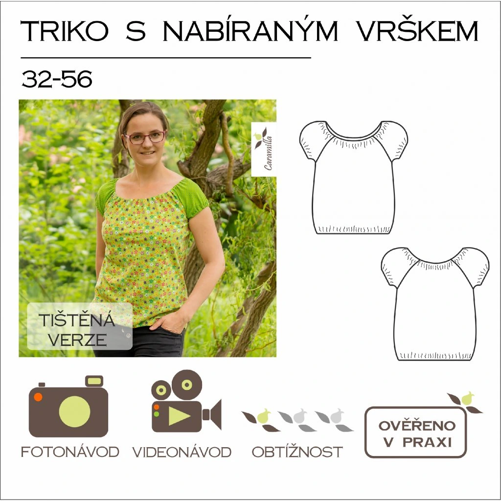 Mnoha švadlenkami otestované střihy Caramilla na triko s nabíraným vrškem ve velikostech 32 - 56.