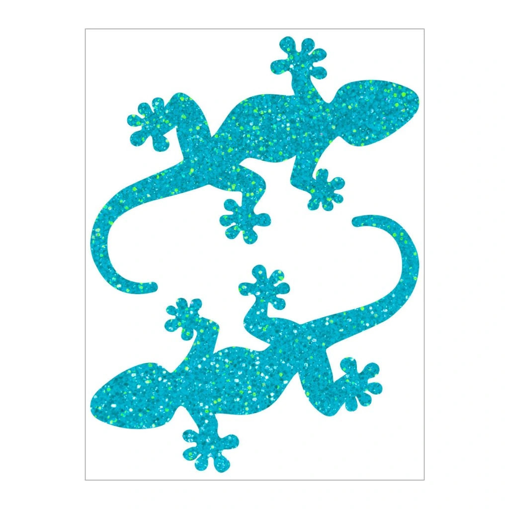 Třpytivý nažehlovací potisk - Ještěrky velké, oceánově modrá