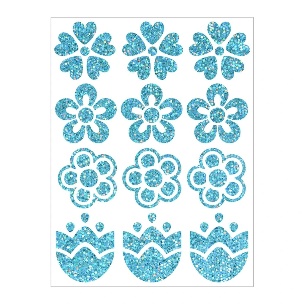 Třpytivý nažehlovací potisk - Kytičky II, nebesky modré