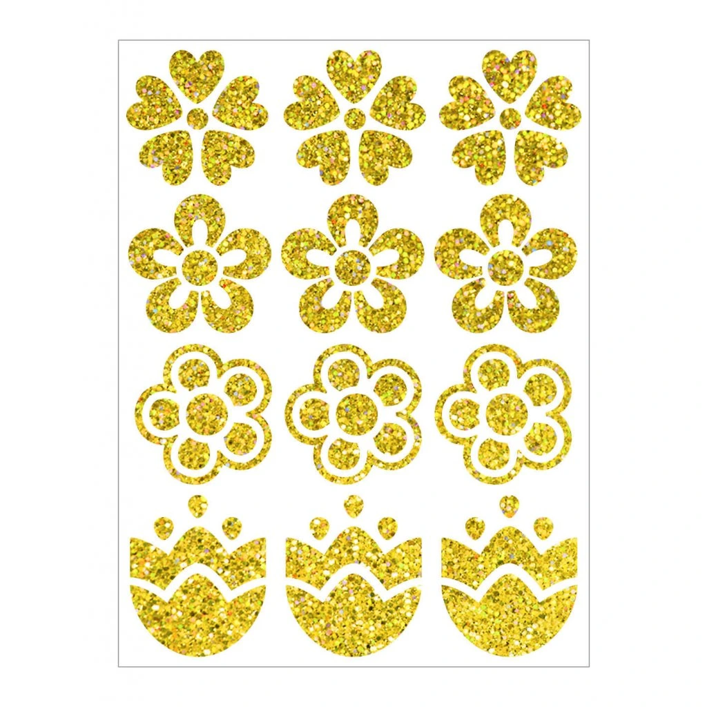 Třpytivý nažehlovací potisk - Kytičky II, zlaté